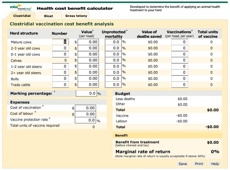 The calculator has been developed to help you work out the benefit of applying an animal health treatment to your herd for bloat, clostridial diseases and grass tetany.
