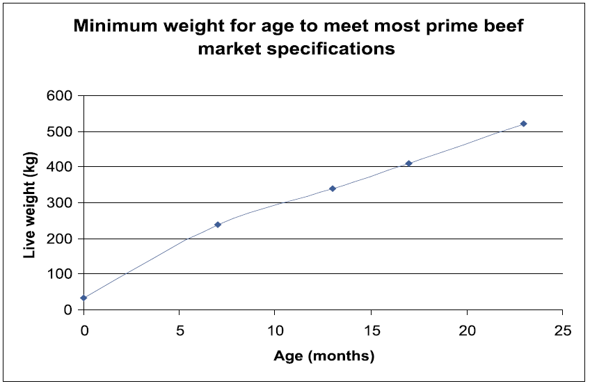 Graph 1: Minimum weight for age to meet most prime beef market specifications