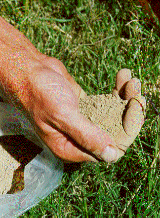 1. Take a sample of soil that has been crumbled and crushed, sufficient to fit comfortably in the palm of your hand.