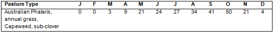 Source: South Australia PROGRAZE manual, Appendix D (for further information and the assumptions on which these tables are based), see the South Australian PROGRAZE manual and the Feed Demand Calculator or visit www.pir.sa.gov.au).