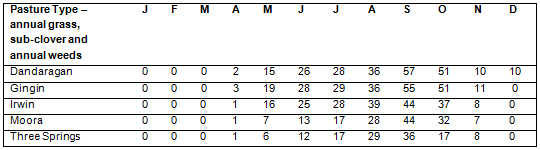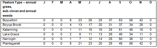 Source: Western Australia PROGRAZE manual, Appendix E (for further information and the assumptions on which these tables are based), see the Western Australian PROGRAZE manual or visit www.agric.wa.gov.au).