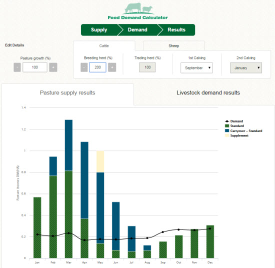 The MLA Feed Demand Calculator clearly illustrates the pattern of feed supply and demand over a 12-month period, the location of feed gaps, and the ways in which modifying the livestock enterprise might help to close those gaps.
