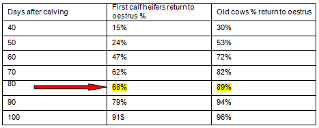 - heifers are particularly sensitive to body weight at calving and post-calving nutrition as reflected in slow return to oestrus